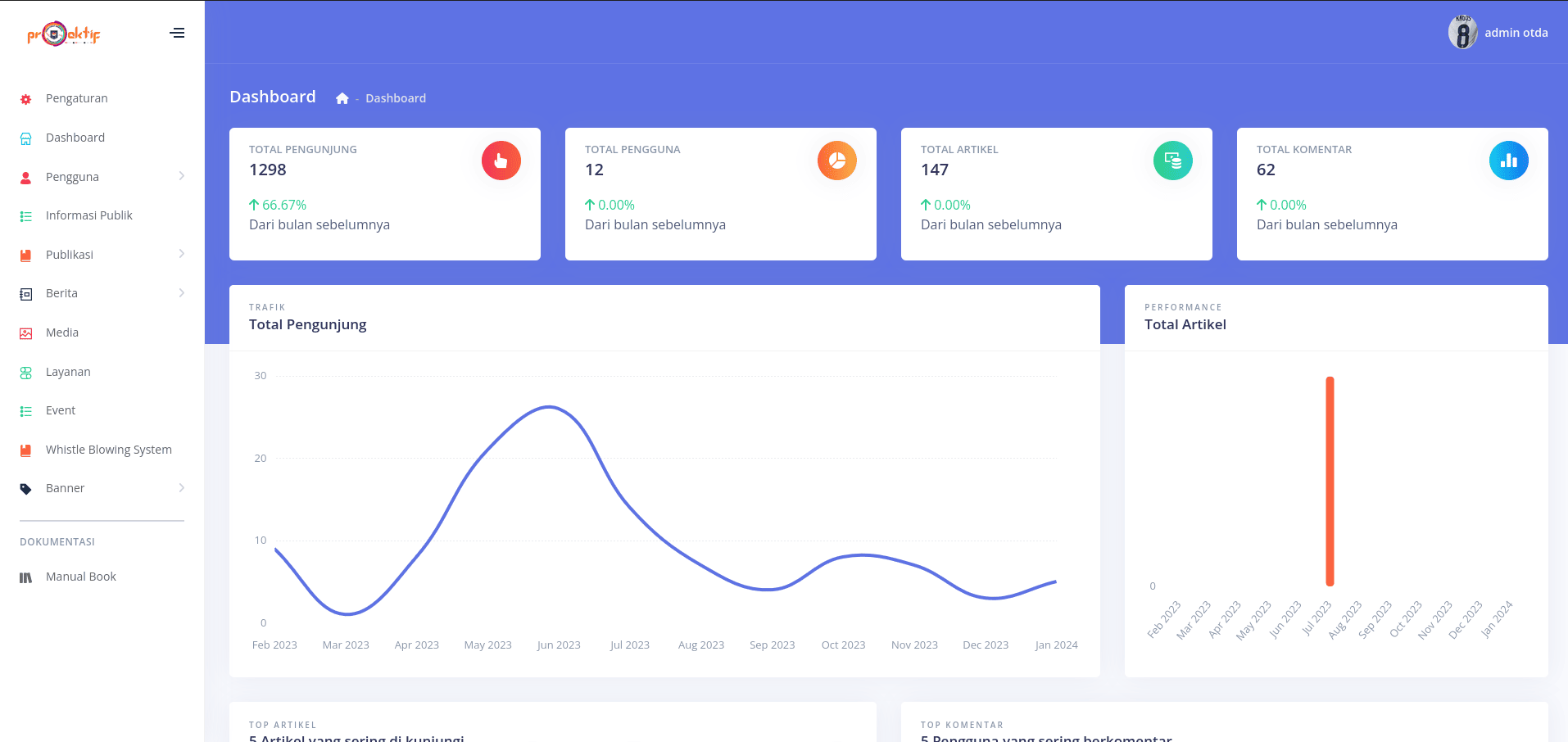 Untuk fitur pada umumnya dalam sistem ini adalah terdapat manajemen pengguna, data berita, moderasi komentar, oAuth login, export data laporan, sitemap, dll.